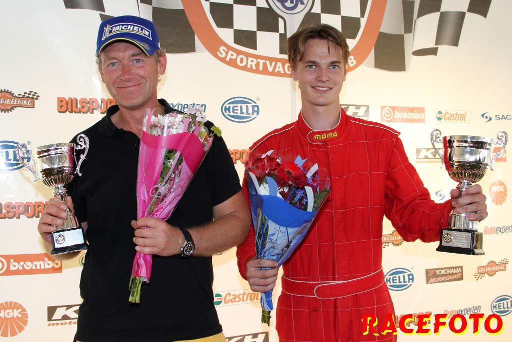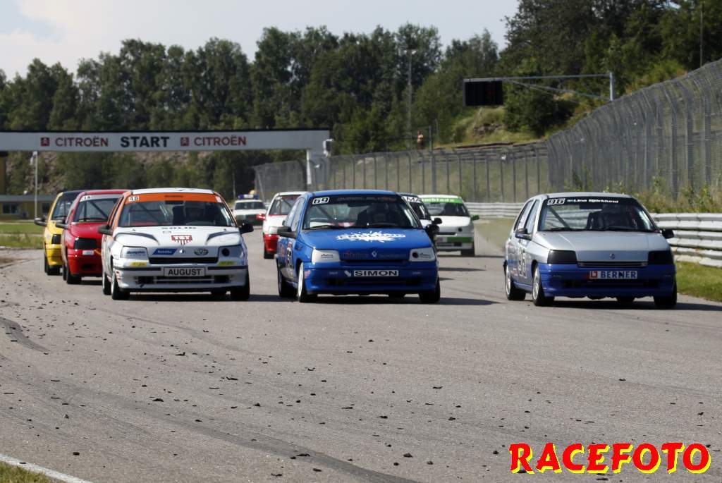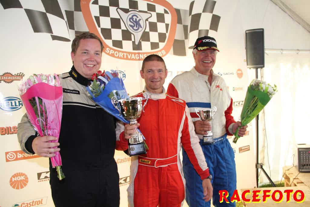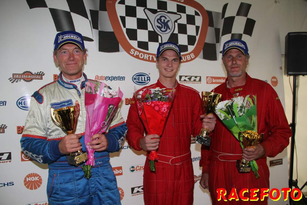 Så till SSK-klasserna... Richard Hansson dubblade som sagt med att köra Volvo Original Cup. I helgen lyckades han åter vinna båda racen, vilket innebär att han dels har vunnit alla race han har kört i Volvo Original Cup och dels att han är obesegrad i SSK serien i över ett år! I Renault Junior Cup har Albin Lundin tagit alla segrar i år, men i starten av första racet trampade han av gaswiren. August Krokström tog hand om ledningen, men han pressades hårt av Simon Englund och Lina Björklund. Krokström lyckades hålla undan och vinna sitt första race med endast 0.062 sekunder före Englund och Björklund. I andra racet kom Björlund iväg snabbast, men en halv billängd bakom henne krokade Englund och Krokström ihop och de drog med sig Björklund av banan. Björklund tvingades tyvärr bryta. Philip Larsson var påpasslig vid omstarten och han tog ledningen för första gången i sitt liv. Englund var sugen på att ta sin första seger så han övertog ledningen. Lundin, som startade sist, jobbade sig snabbt upp genom fältet och vann före Englund och Larsson. I Formula Basic var det som vanligt sevärd och tät racing där Henrik Furuseth, Robert Svensson och Tommy Östgaard turades om i ledningen. Furuseth vann första före Svensson och Östgaard. Andra racet blev ännu mera händelserikt sedan Oskar Krüger fått en jättesladd under bron där flera förare körde av och på varandra för att försöka undvika honom. Östgaard vann till sist före Ida Granegärd och Joakim Rognlien. Man kan helt klart säga att det är i de båda ungdomsklasserna vi får se mest spännande race!
