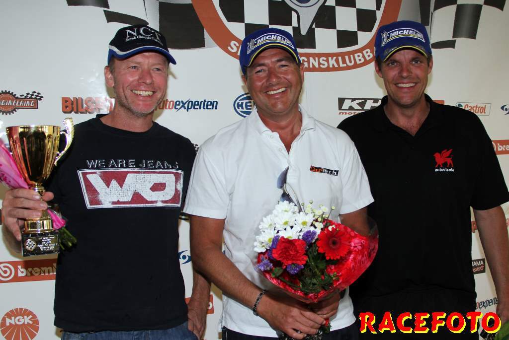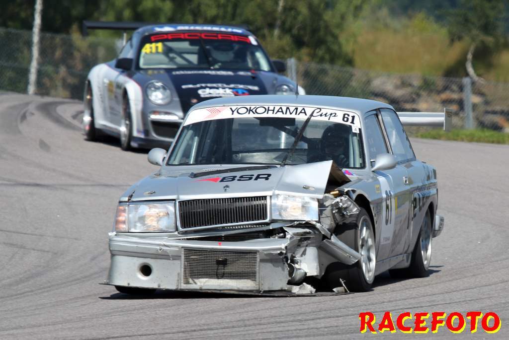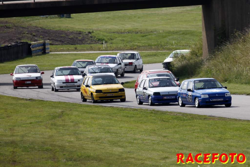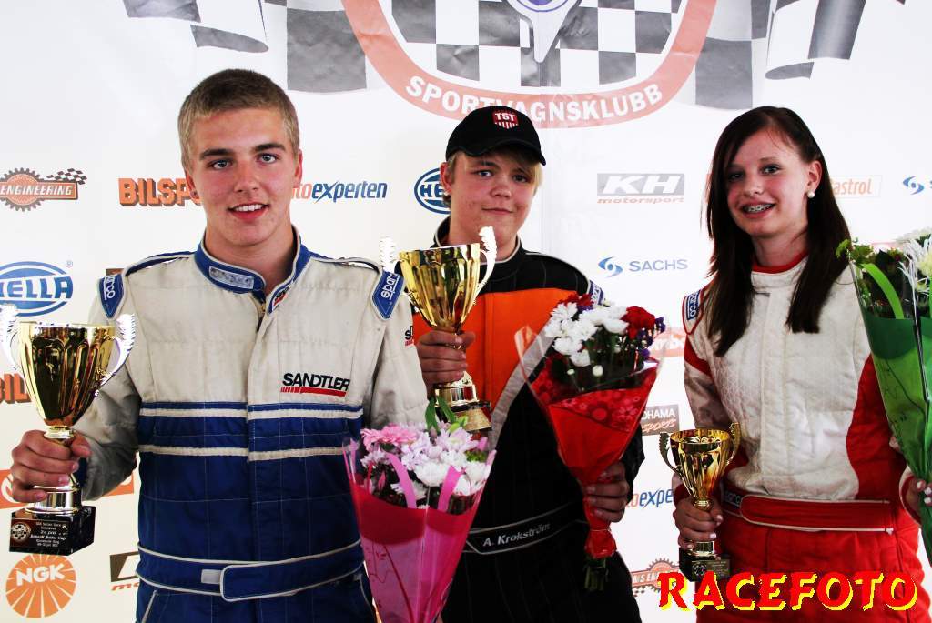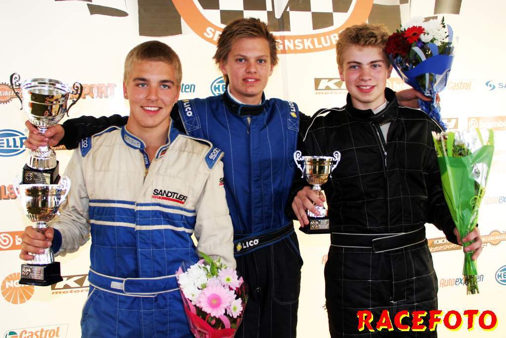 Så till SSK-klasserna... Richard Hansson dubblade som sagt med att köra Volvo Original Cup. I helgen lyckades han åter vinna båda racen, vilket innebär att han dels har vunnit alla race han har kört i Volvo Original Cup och dels att han är obesegrad i SSK serien i över ett år! I Renault Junior Cup har Albin Lundin tagit alla segrar i år, men i starten av första racet trampade han av gaswiren. August Krokström tog hand om ledningen, men han pressades hårt av Simon Englund och Lina Björklund. Krokström lyckades hålla undan och vinna sitt första race med endast 0.062 sekunder före Englund och Björklund. I andra racet kom Björlund iväg snabbast, men en halv billängd bakom henne krokade Englund och Krokström ihop och de drog med sig Björklund av banan. Björklund tvingades tyvärr bryta. Philip Larsson var påpasslig vid omstarten och han tog ledningen för första gången i sitt liv. Englund var sugen på att ta sin första seger så han övertog ledningen. Lundin, som startade sist, jobbade sig snabbt upp genom fältet och vann före Englund och Larsson. I Formula Basic var det som vanligt sevärd och tät racing där Henrik Furuseth, Robert Svensson och Tommy Östgaard turades om i ledningen. Furuseth vann första före Svensson och Östgaard. Andra racet blev ännu mera händelserikt sedan Oskar Krüger fått en jättesladd under bron där flera förare körde av och på varandra för att försöka undvika honom. Östgaard vann till sist före Ida Granegärd och Joakim Rognlien. Man kan helt klart säga att det är i de båda ungdomsklasserna vi får se mest spännande race!