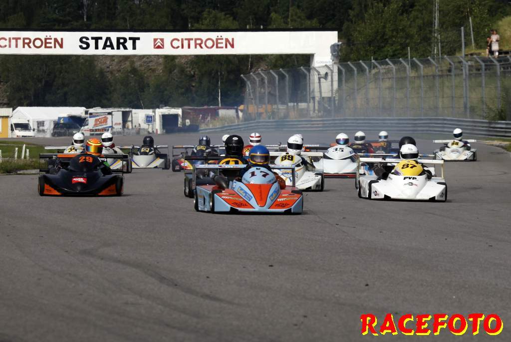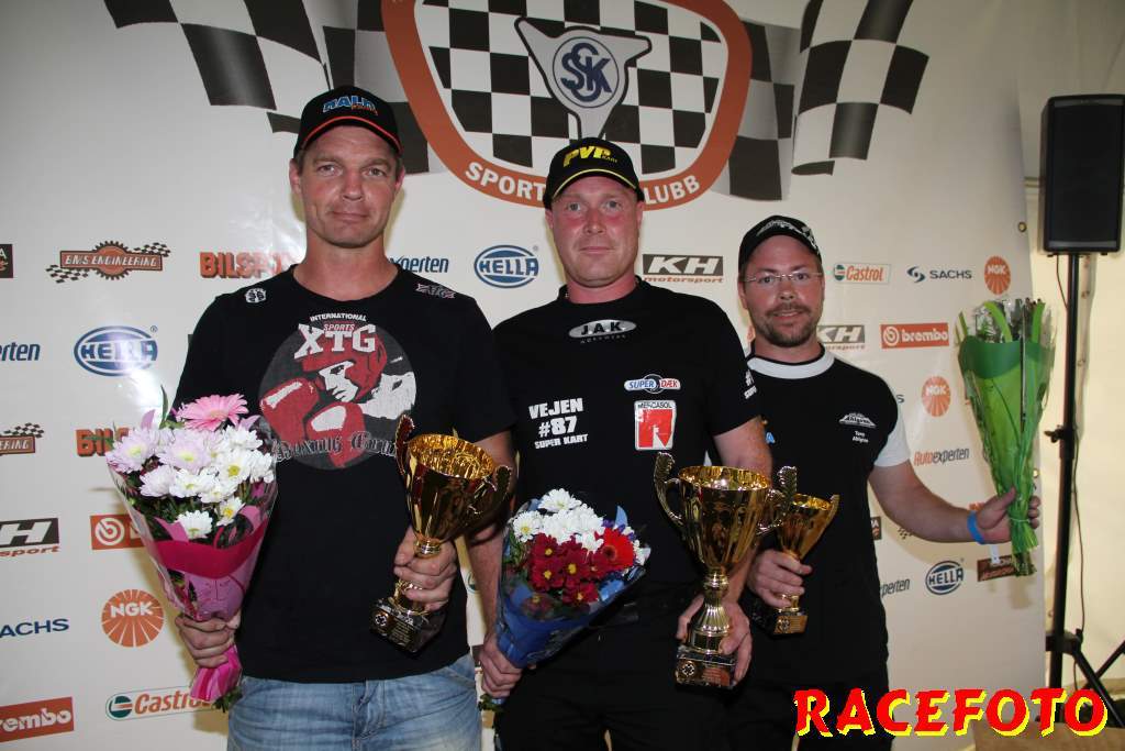 Superkart har gjort ett annat upplägg i år med dels SM som körs ihop med SSK under två helger och dels en Skandinavisk Cup med prispengar. Helgens tävling ingick i båda serierna. Tre förare stod i en klass för sig under helgen; Stefan Malm tog pole före Tony Ahlgren och Henrik Vejen. Dessa tre var de enda som körde under 51 sekunder under helgen. Malm tog starten före Ahlgren och Vejen, men Ahlgren visade sin snabbhet och övertog ledningen. Malm återtog ledningen efter några varv, men Vejen kom smygande och vann racet med en dryg sekund över Malm. - Jag vet att jag är snabb, men tyvärr är inte min kondition lika god, sa Ahlgren efteråt. I andra racet tog Ahlgren starten. Han ledde några varv tills krafterna åter började tryta. Vejen vann igen före Malm och Ahlgren. Vejen deltar dock inte i SM som nu leds av Malm före Ahlgren och regerande mästaren Kalle Dejemyr. I SuperVklassen vann Sindre Berg det ena racet och Hans Hildensjö det andra.